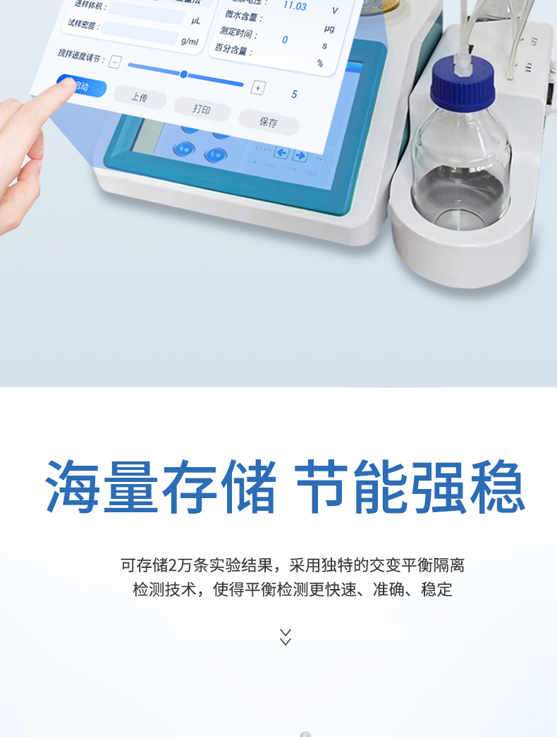 Ø 5、可存储2万条实验结果;采用独特的交变平衡隔离检测技术,使得平衡检测更快速、准确、稳定;电解电路采用先进的PWM脉冲调宽技术,大大降低了整机功耗。