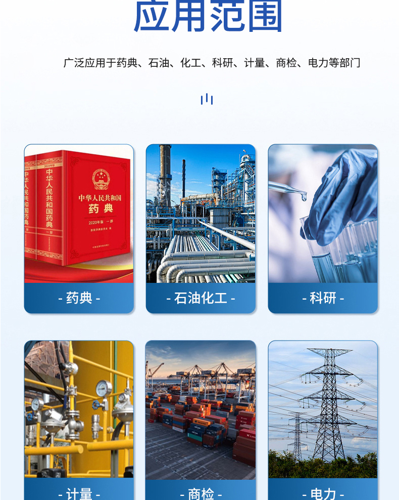 应用范围:电力、石油、化工、药典、计量、科研、商检等部门。
