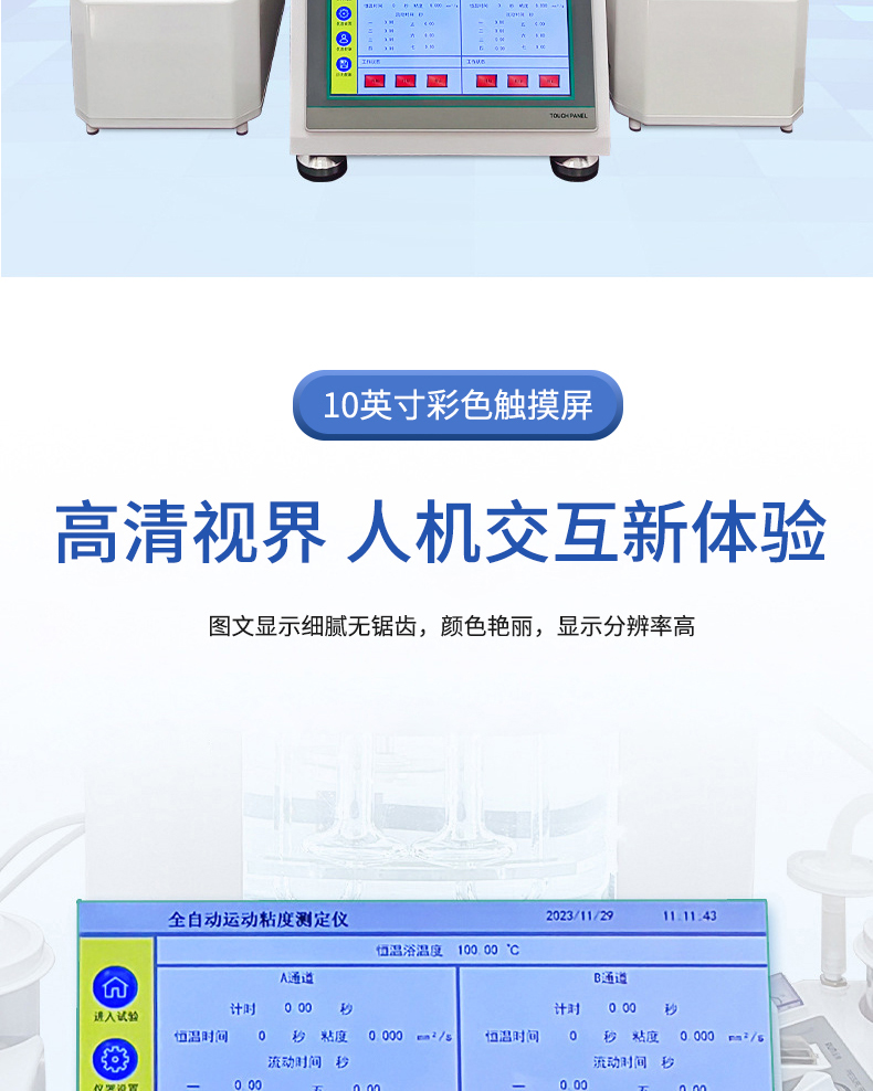2、显示屏采用10.0英寸彩色触摸屏,图文显示细腻无锯齿,颜色艳丽,显示分辨率高。