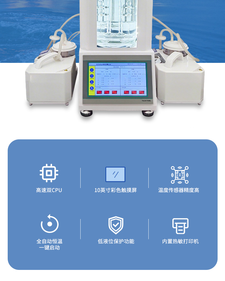 仪器是按照GB/T265、ASTM D445的标准要求研制开发,用于测定液体、石油产品的运动粘度,结构设计精巧、美观、实用、操作舒适。一键快速恒温、油样上吸、粘度检测、粘度值计算、打印、粘度管清洗、烘干粘度管,不需要人工操作,仪器自动完成,一次可同时做2个样品的实验,提高工作效率;广泛应用于药典、石油、化工、科研、计量、商检、电力等部门。