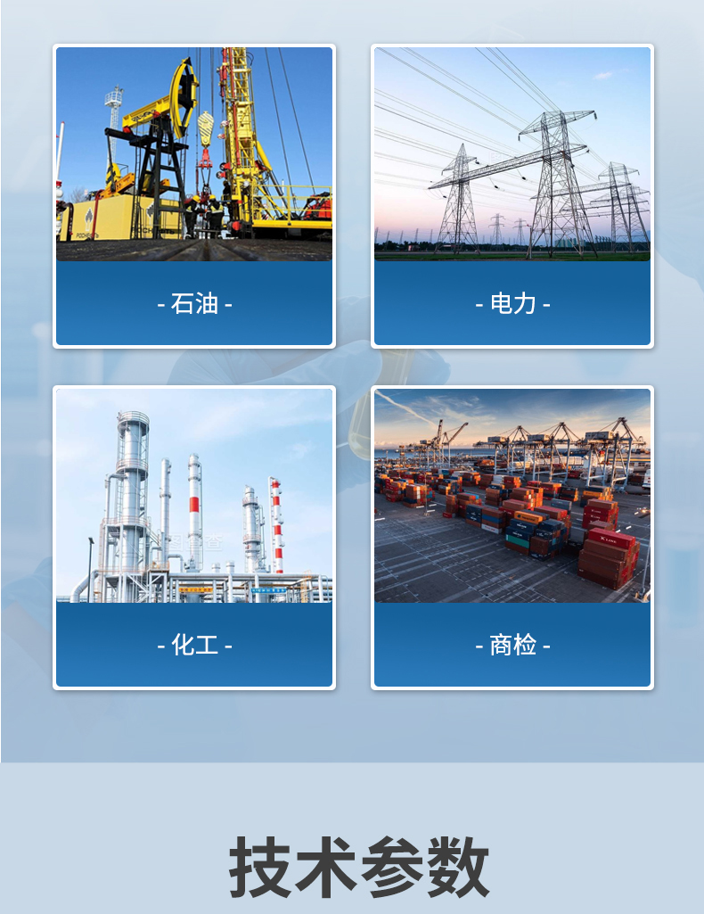 应用范围:电力、石油、化工、第三方检测、航空、商检、科研等部门。